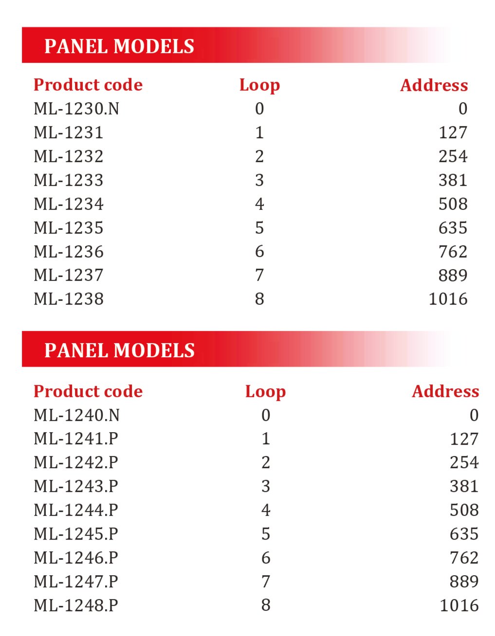- Expandable up to 8 loops, max. 1016 addresses capacity for each panel.